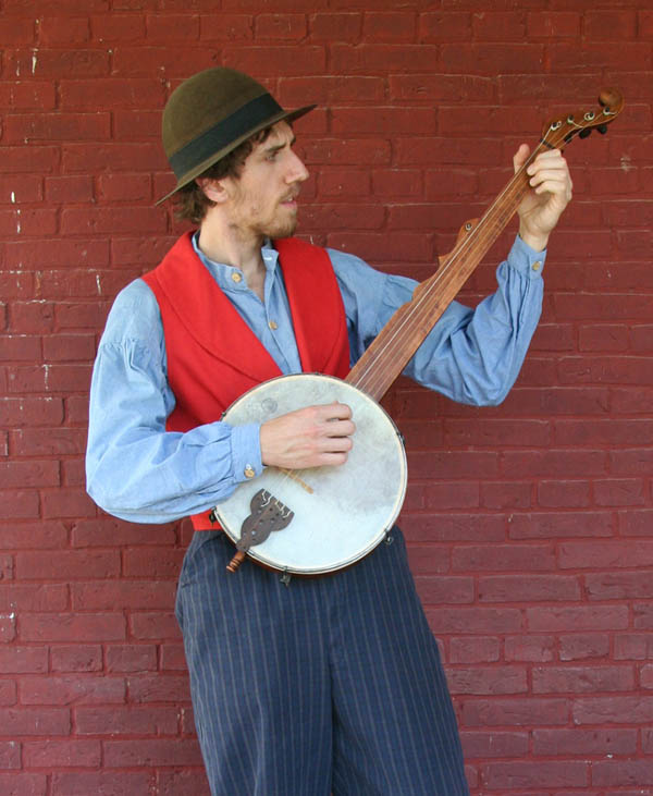 Julian Whittam playing a Boucher Banjo. Julian as an interpreter at Upper Canada Village, Morrisburg, Ontario