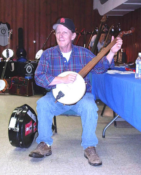 Walt Koken trying out a Boucher banjo at Banjo Camp North, May, 2004 .